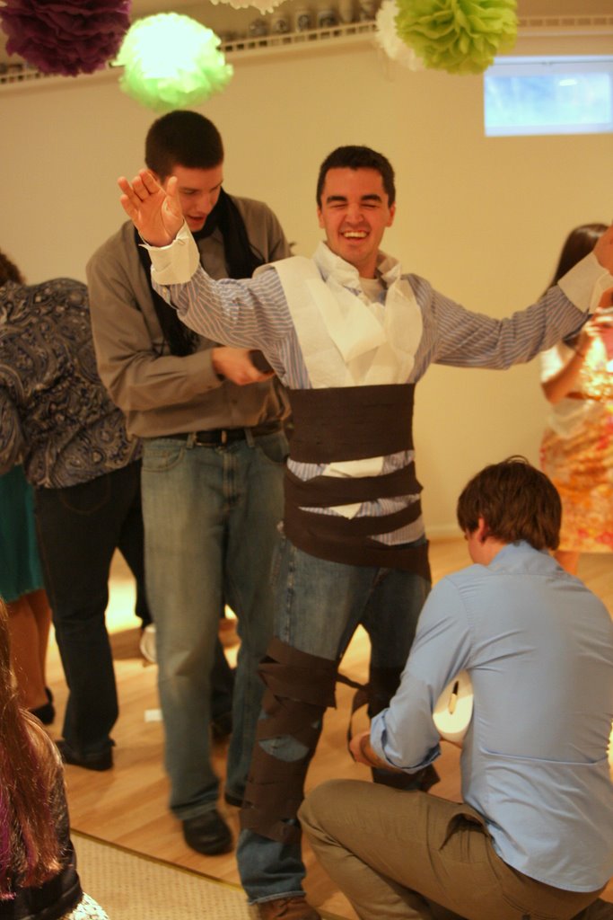 Most traditional wedding shower games won't interest the men at all.... too girly! The way to go would be to have a "Couples Quiz". See how well the intended couple really know each other with some fun questions! Another twist would be to have the male version of the toilet paper wedding dress game. How about the toilet paper tuxedo game! What about Karoake? That could be a very entertaining part of the evening!